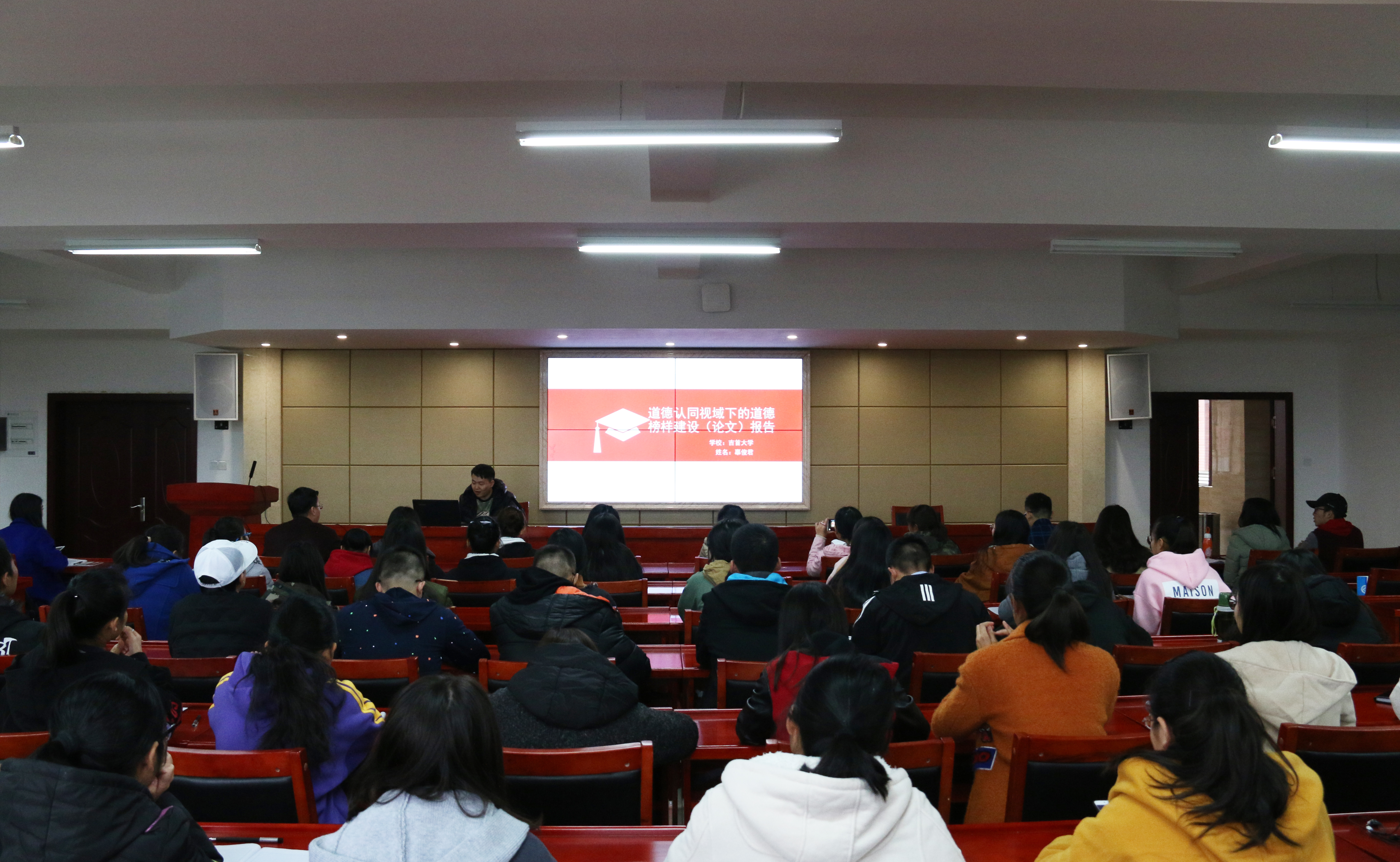 报告会现场,来自南华大学、中南大学、开云手机web版登录入口、吉首大学的8位研究生进行了优秀论文报告。来自中南大学的李哲从研究背景、研究内容和研究结论三个方面向大家报告了她的论文《提升亲和力和针对性,增强思想政治理论课实效性》。李哲认为,增强思想政治理论课的实效性是高校关注和探索的时代命题。亲和力和针对性是增强思想政治理论课实效性的重要条件。改善教师教育教学方式、提升教师人格魅力、树立“以人为本”的教育理念、搭建信息化网络平台、完善实践教学是增强思想政治理论课亲和力和针对性的重要路径。